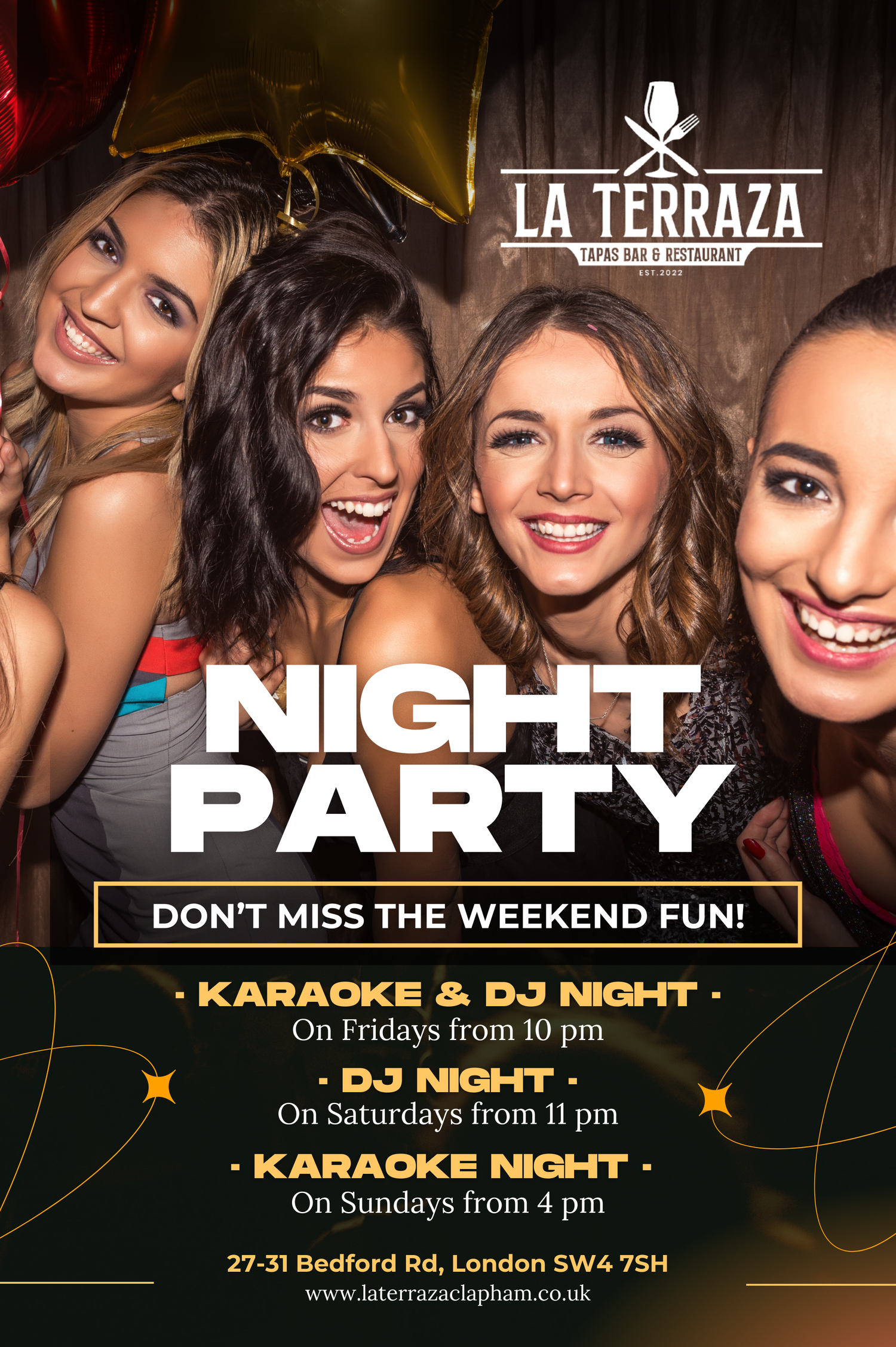 Don’t miss our exciting weekend events at La Terraza! Enjoy Karaoke & DJ Nights every Friday, DJ Nights on Saturdays, and Karaoke Nights on Sundays.