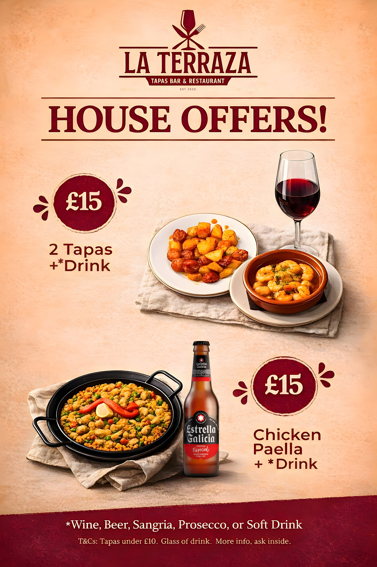 Enjoy your favourite La Terraza dishes from the comfort of your home! We're now available for delivery on Deliveroo and Uber Eats. Order now and bring the taste of Spain to your doorstep.