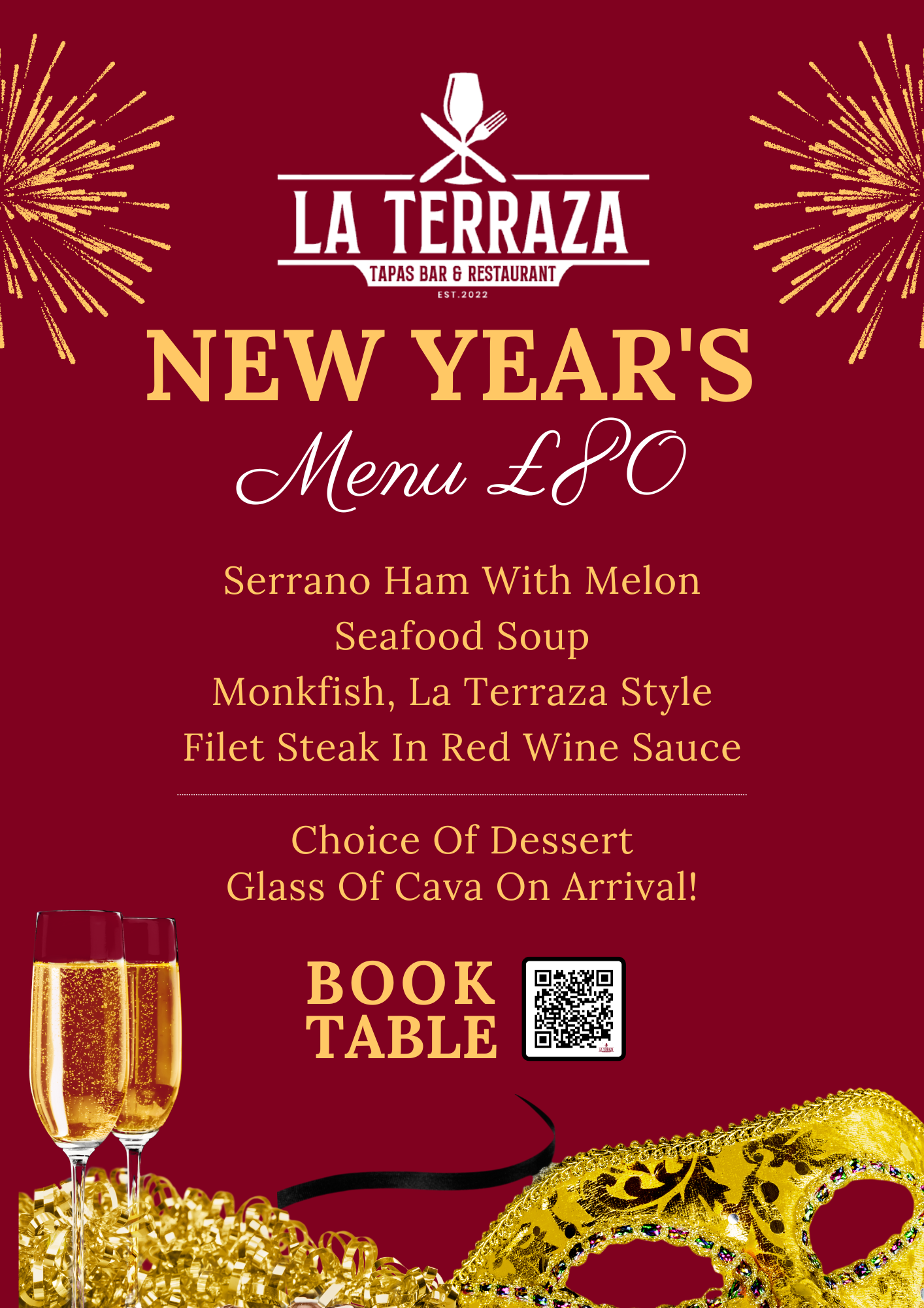 Ring in the New Year with a special dinner menu, a glass of cava on arrival, and a DJ spinning tunes until very late.