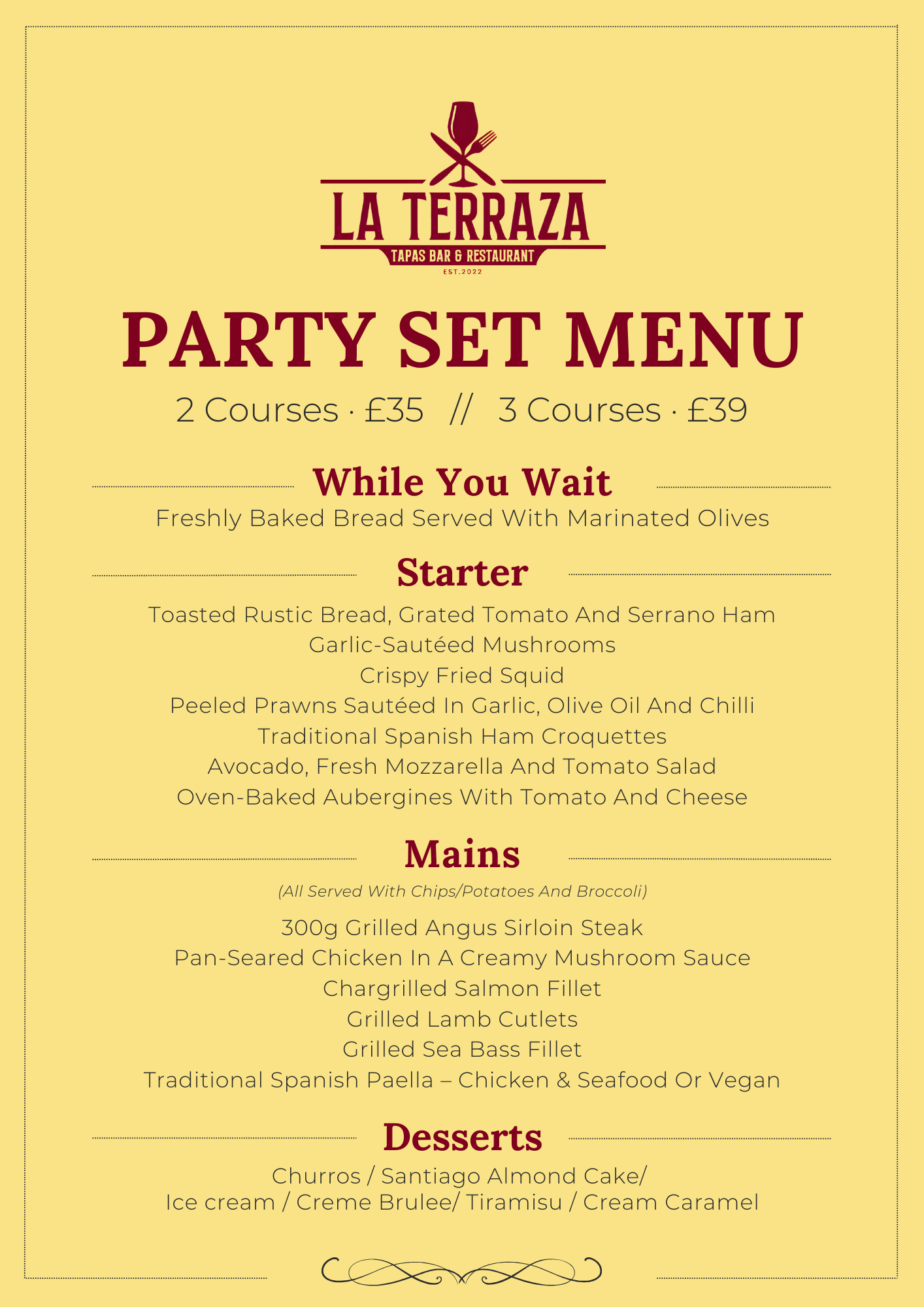 Party Set Menu