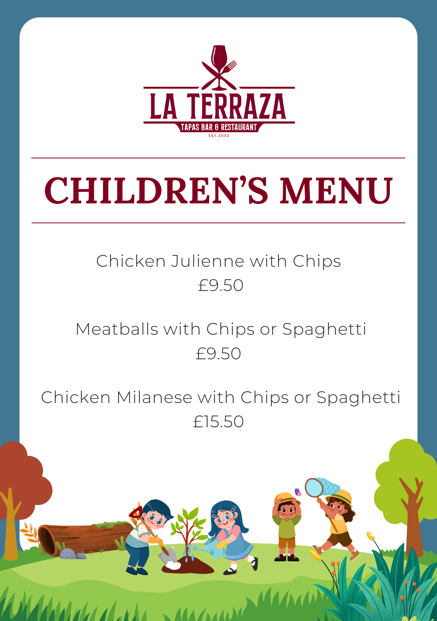 Simple, tasty dishes made for little ones. Easy favourites, the right portions, and a relaxed meal while you enjoy your time at La Terraza.